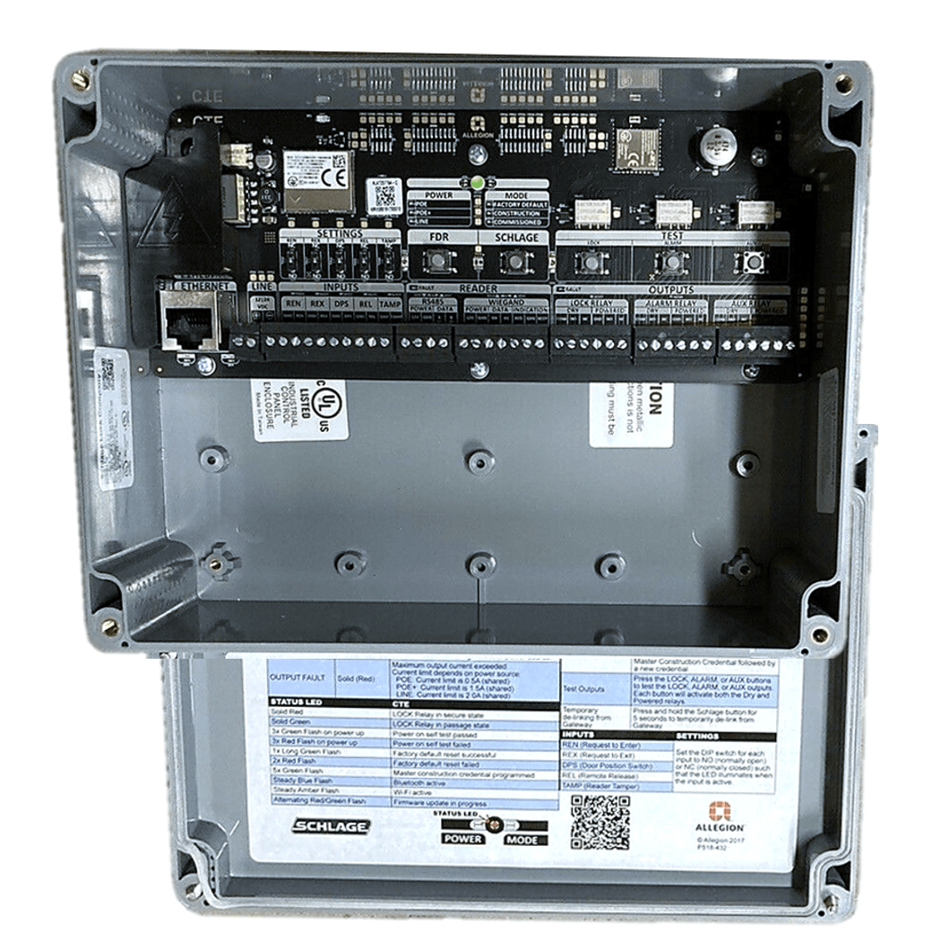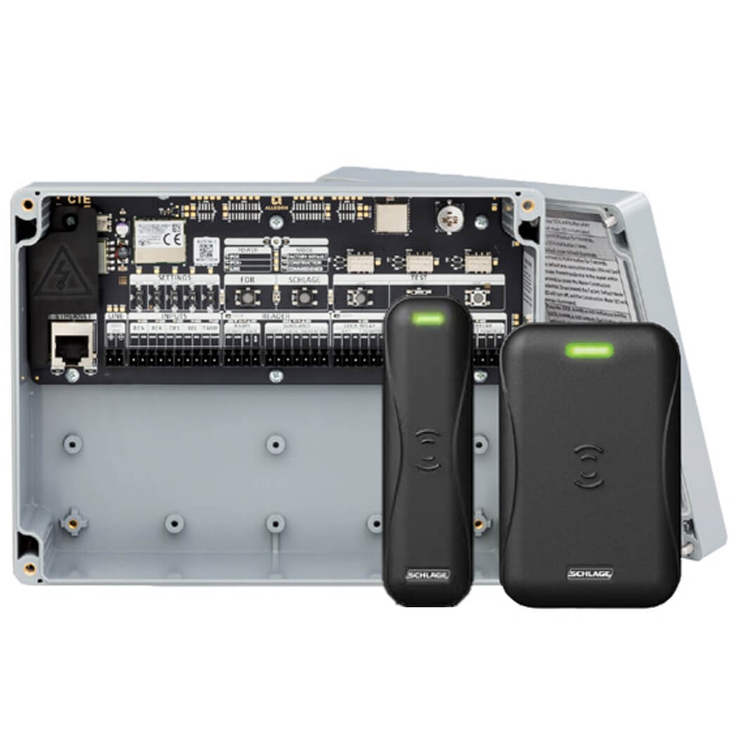 Schlage CTE is an ENGAGE™ enabled single opening controller that allows perimeter and common area openings to be managed in a single system along with Schlage Control™ smart deadbolts, NDE cylindrical and LE mortise wireless locks. It is ideal for multi-family, commercial mixed use, and retail storefront applications. WiFi and Bluetooth communication allows for full control. The CTE is designed to work with a Schlage® Multi-Technology credential reader and interface with an electrified lock, electromagnetic lock, electric strike, automatic operator, or exit device to control an opening. The CTE single door controller is designed for flexibility and can be managed with ENGAGE™ web and mobile app.